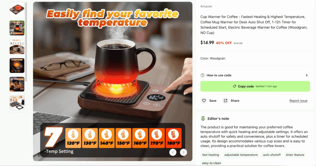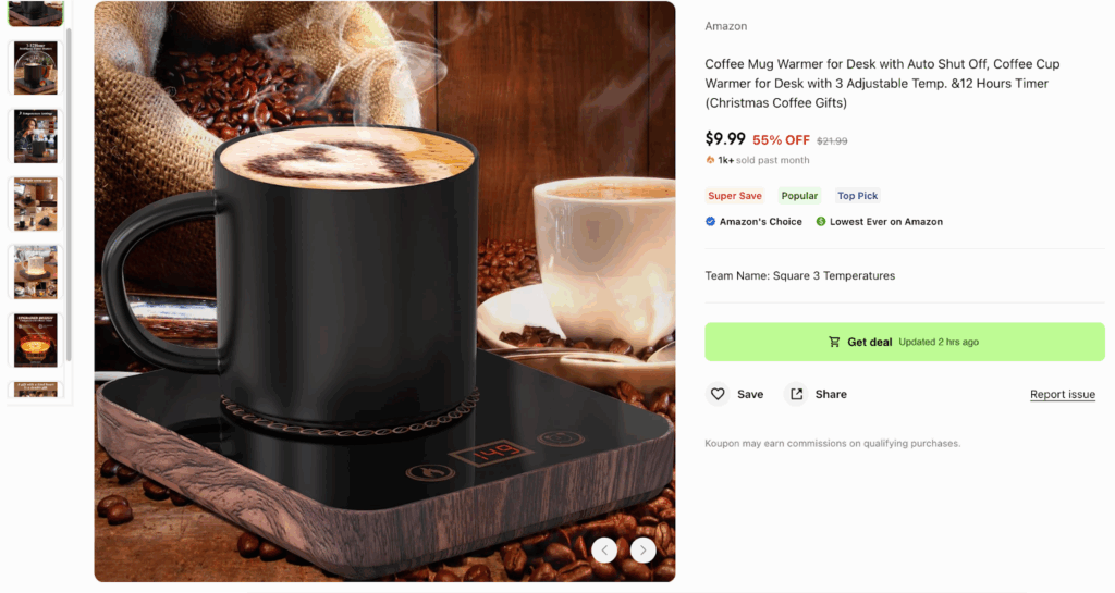 - Coffee Mug Warmer for Desk – $21.99 → $9.99 (55% OFF):