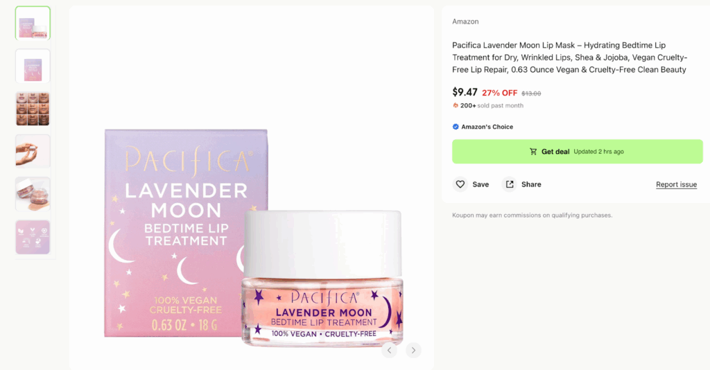 - Pacifica Lavender Moon Lip Mask– $13.00 → $9.47 (53% OFF):