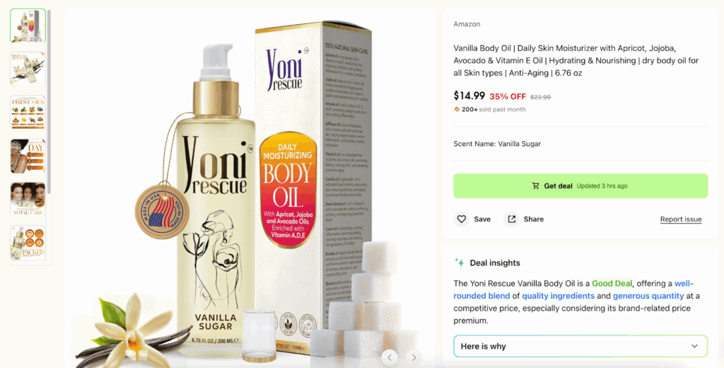 - Vanilla Body Oil (Apricot, Jojoba, Avocado & Vitamin E) – $22.99 → $14.99 (35% OFF):