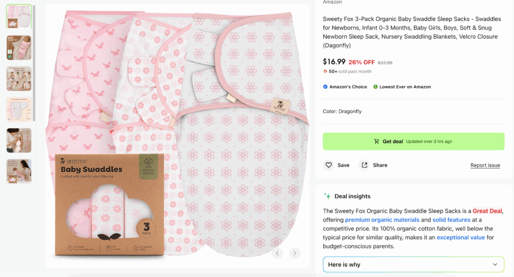 - Sweety Swaddles for Newborns (3-Pack) – $22.99 → $16.99 (26% OFF):