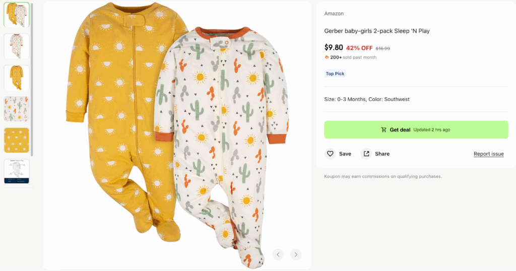 - Gerber Baby Sleep ‘N Play (2-Pack) – $16.99 → $9.8 (42% OFF):