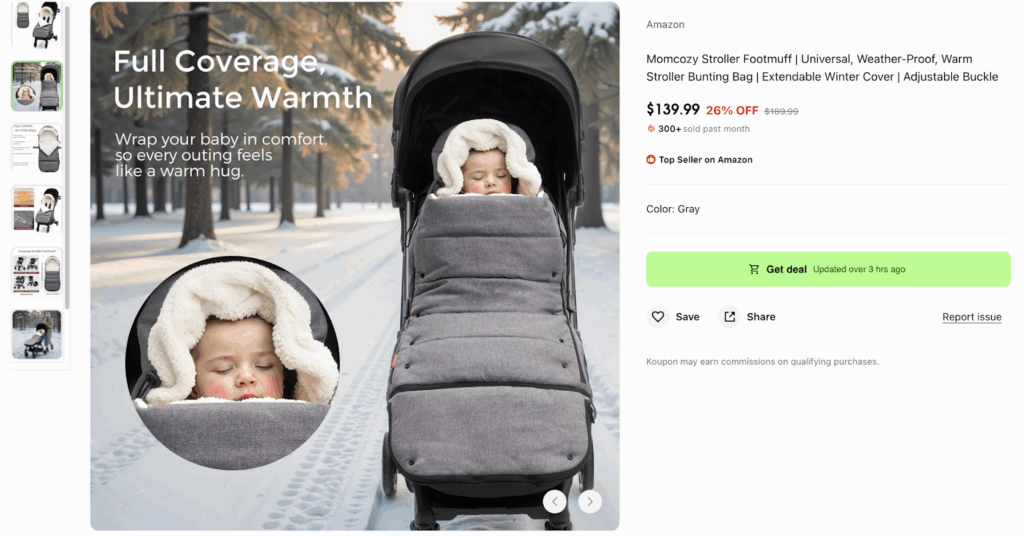 - Momcozy Stroller Footmuff – $189.99 → $139.99 (26% OFF):