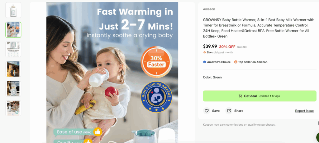 - GROWNSY Bottle Warmer – $49.99 → $39.99 (20% OFF):