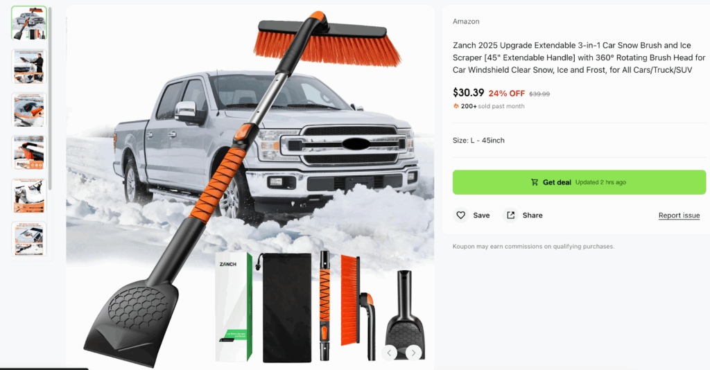 - 2025 Extendable Car Snow Brush & Ice Scraper (3-in-1) – $39.99 → $30.39 (20% OFF):