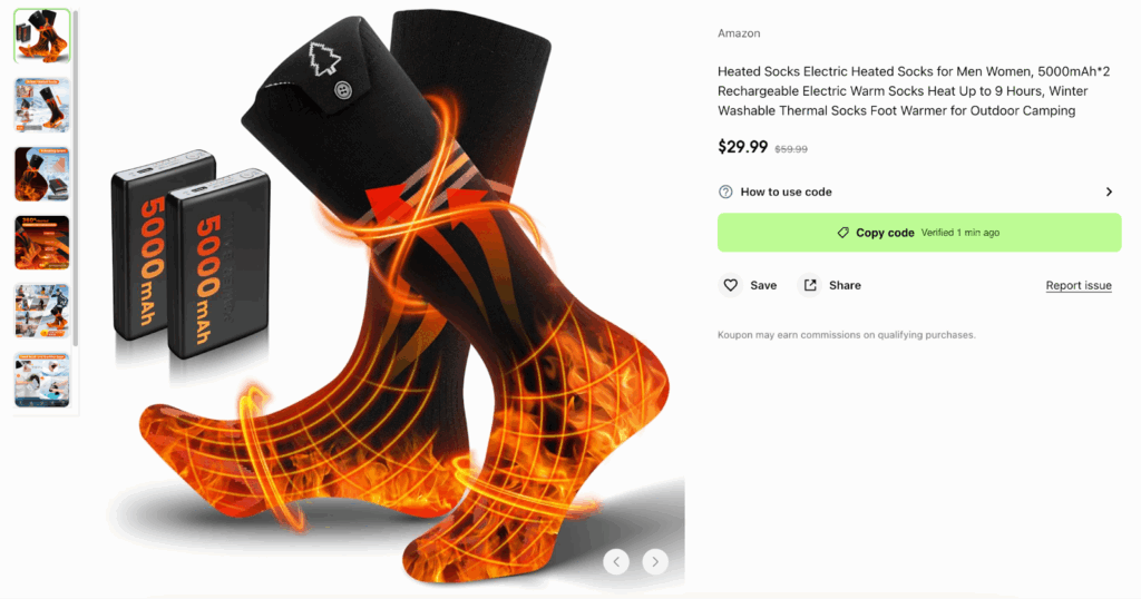 - Heated Socks for Men & Women – $59.99 → $29.99 (40% OFF):