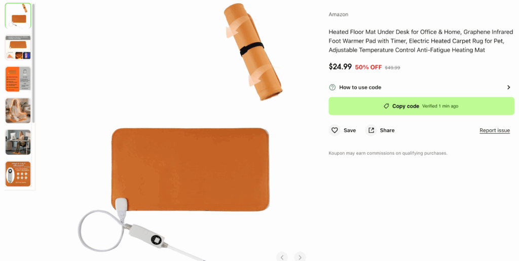 - Heated Floor Mat Under Desk – $49.99 → $24.99 (50% OFF):