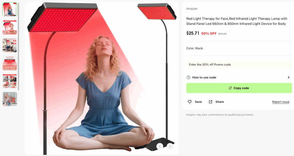 - Red Light Therapy Lamp (Dual Lamps) – $51.43 → $25.71 (50% OFF):