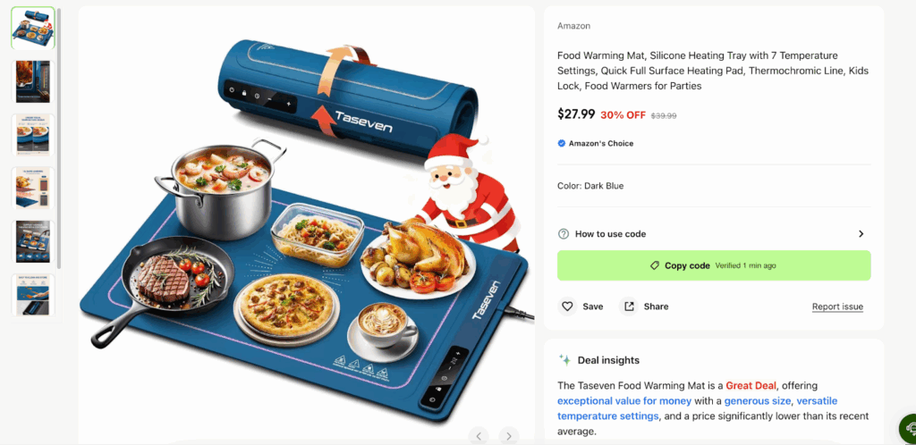 - Taseven Food Warming Mat – $39.99 → $27.99 (30% OFF):
